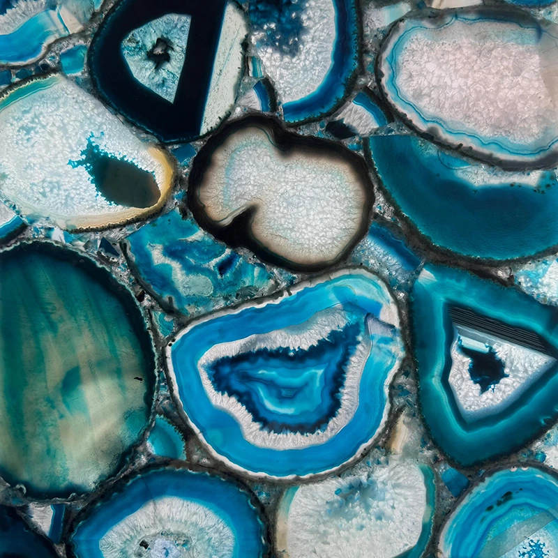 Máme velkou škálu modrých achátových desek, které můžeme utvářet tak, aby vyhovovaly vašim požadavkům na návrh a jakékoli velikosti. Můžeme vám dodat ideální modrý boční stůl, jídelní stůl nebo konferenční stolek v závislosti na tom, co hledáte. Pro jednotlivce, kteří chtějí zdůraznit průsvitné vlastnosti Blue Agate, poskytujeme také podsvícené panely.