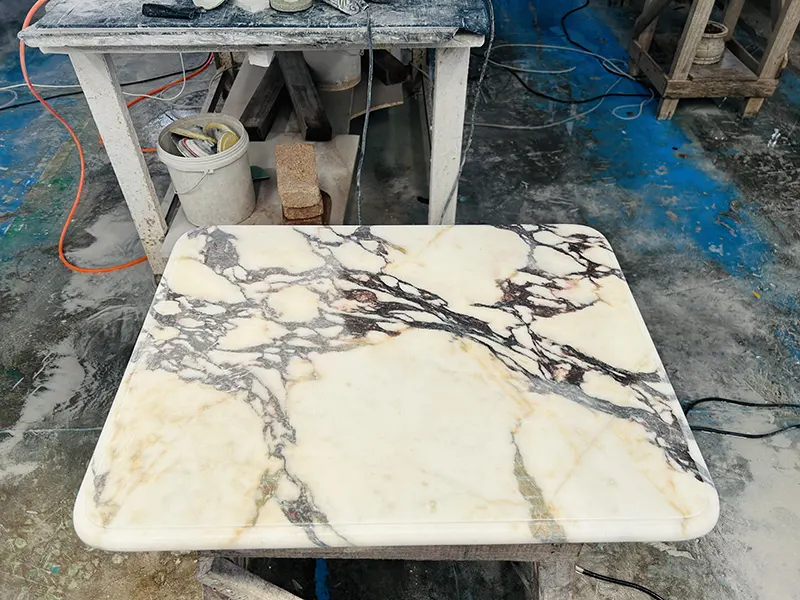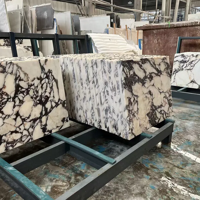 Udržujeme po ruce více než 1000 metrů čtverečních metrů mramorové desky Calacatta Viola, která umožňuje klientům vybrat jejich přesnou desku pomocí nástrojů pro výběr videa.