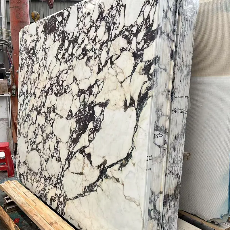 Dramatické fialové žilce kontrastuje s bohatým bílým půdou, je to, co je Marble Calacatta Viola Marble známý. Silná a abstraktní design - téměř připomínající kartáč na uměleckém díle - jsou tyto žíly směsí pastelových lila k barvám Bordeaux. Tento přirozený kontrast vytváří úžasný vizuální dopad, který činí jakýkoli povrchový umělecký.