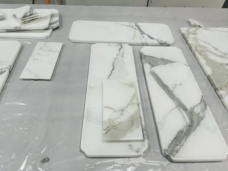 Děláme víc než jen řezat kámen na Wow Stone. Spolupracujeme s vámi, abychom přesně vytvořili to, co potřebujete. Můžeme odpovídat barvám, obilím a tónu k vašemu vidění, protože máme na skladě více než 1 000 metrů čtverečních metrů Calacatta desek. To, co chcete, je malá mramorová deska v matném povrchu. Zlatá kulatý mramorový podnos? Nebo sbírka předmětů s mramorovou deskou podobnou velikostí? Máme tě.