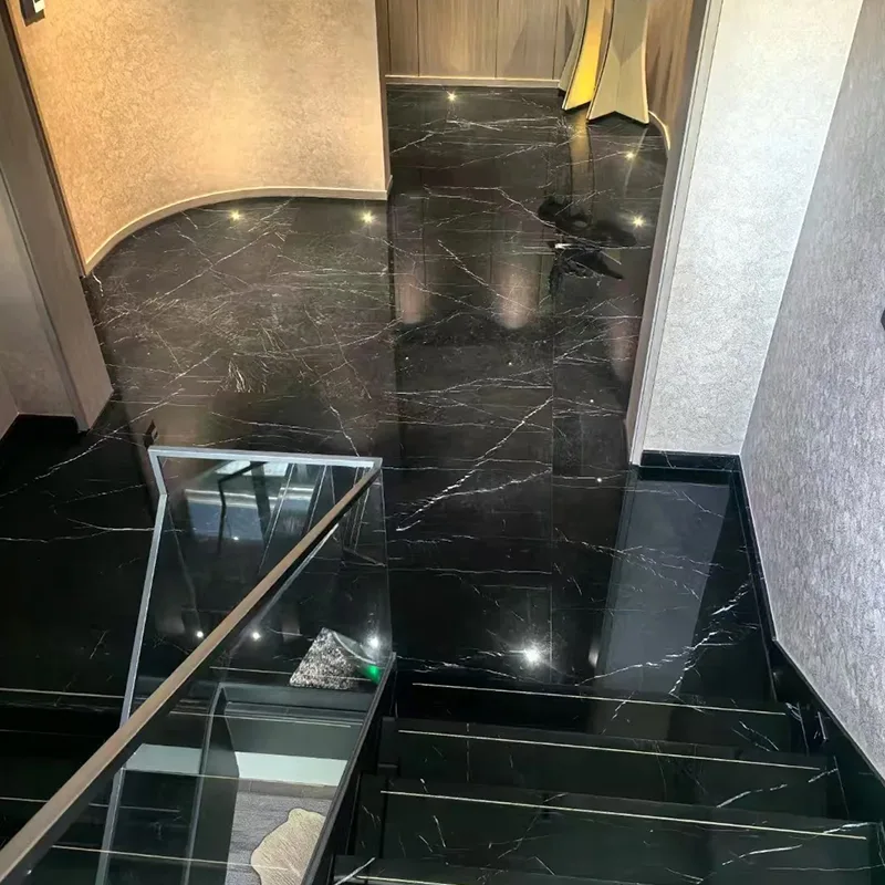 Čínská mramorová deska Marquina je jednou z nejběžnějších černých kuliček. Tento čínský mramor je oblíbený u designérů a majitelů domů za jeho jednoduchou žilku a dobrou cenu. Mnoho vnitřních prostorů používá tento mramor pro podlahy a schodiště.