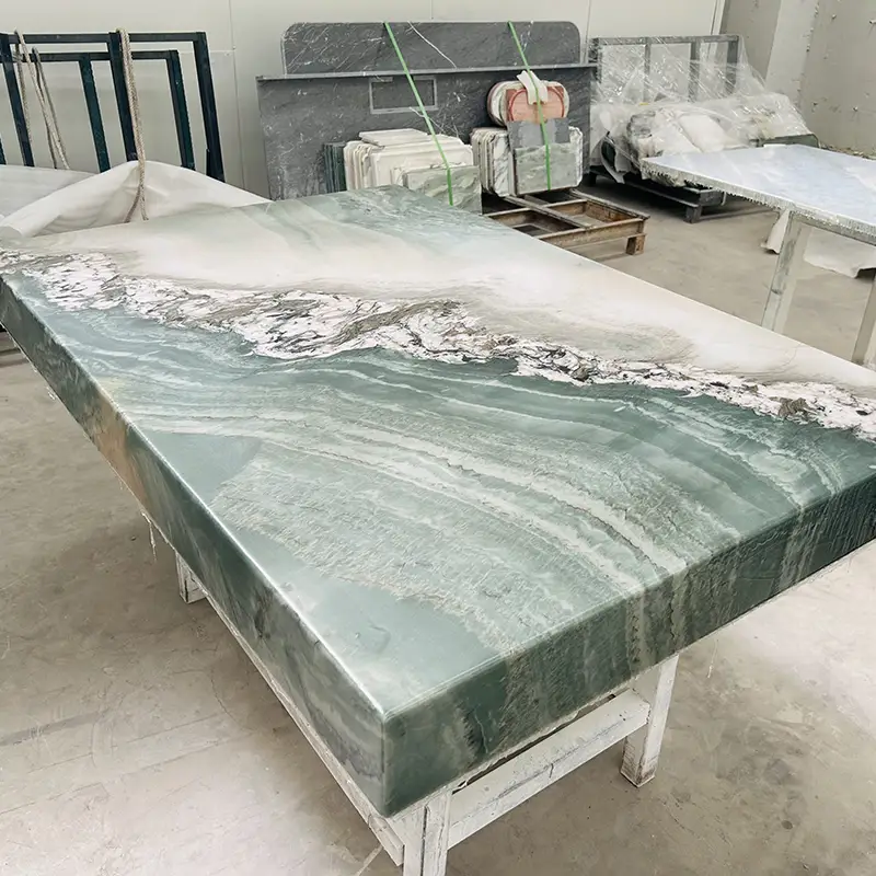 Ano. Je ideální pro koupelny kvůli své tvrdosti, porozitě a krásné nazelenalé barvě. Vytváření jednotných hustých koupelnových prvků se široce používá jako křemenná deska a backsplash.