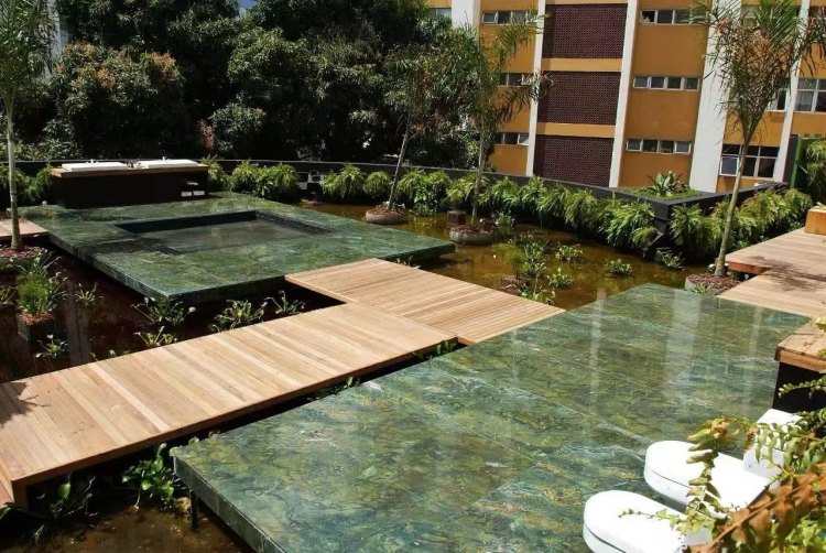 Je tu trochu vnějšího světa přivedena se zeleným mramorem. Je ideální pro výrobu mírové svatyně v domě kvůli jeho hustým vzorům a lesním barvám. Po dlouhém pracovním dni je uklidňující a přirozený.