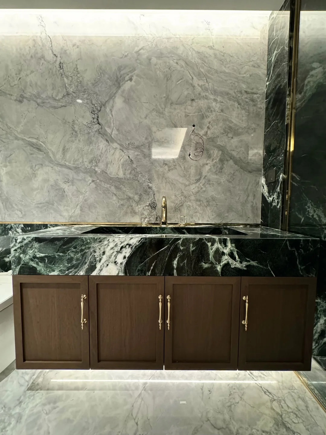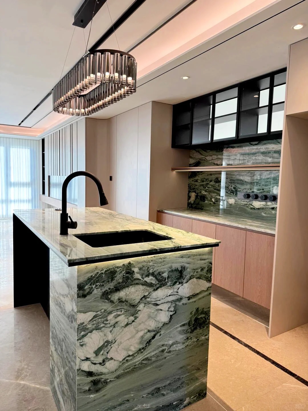Green Alps Marble:Verde Alpi Marble je luxusní mramor se zelenou barvou a méně žilku. Je to perfektní pro někoho, kdo si nepřeje moderní vzhled.