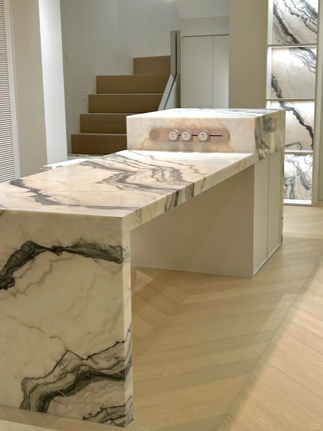 Naši konzultanti designu doporučí nejvhodnější kámen pro váš kuchyňský ostrov nebo na zakázkové stolní stolní stolní. Možná budete chtít zvážitCalacatta Purple Marblepro dramatický účinek. Alpitativně může být mramor Verde Alpi ideální pro odvážný vzhled. Chápeme, že všechny projekty nejsou stejné, a proto se snažíme splnit vaše individuální požadavky v naší výrobě kamenné desky.