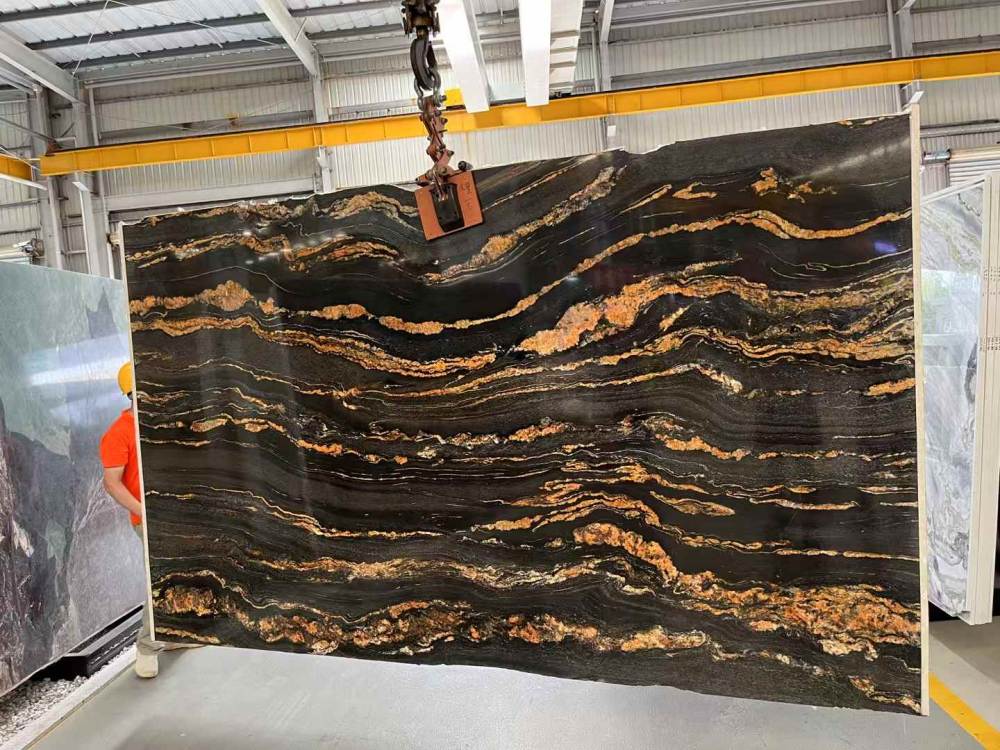 Se zlatými vlákny procházejícími hlubokou obsidiánskou základnou je magma zlatý žula černý luxusní kámen z Brazílie. Populárně známá jako Galaxy Stone, má podobnost s hvězdnou noční oblohou. Je to perfektní volba pro luxusní kamenné desky a backsplashes kvůli vysokému kontrastu mezi zlatými žilami a černým pozadím. Populárně známá jako Galaxy Stone, má podobnost s hvězdnou noční oblohou. Je to perfektní volba pro luxusní kamenné desky a backsplashes kvůli vysokému kontrastu mezi zlatými žilami a černým pozadím.