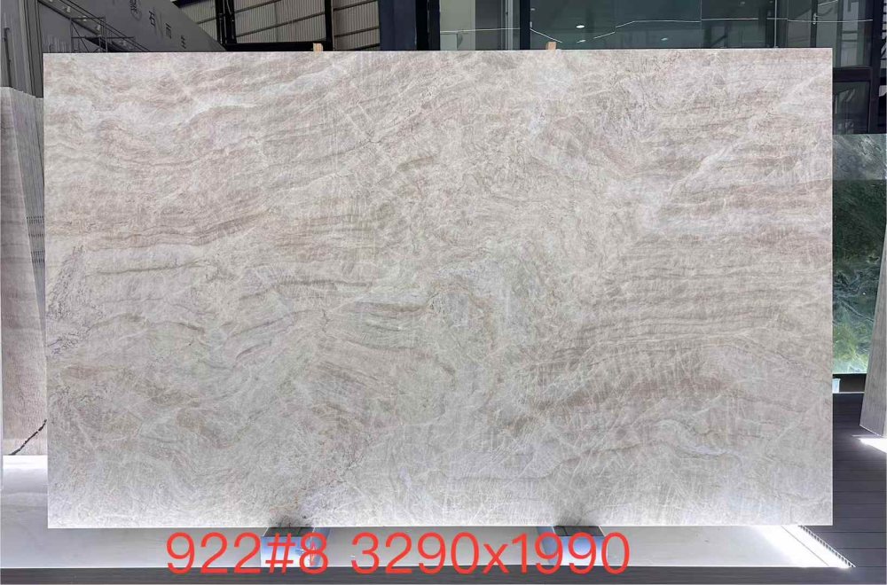 High-end luxusní kamenný a mramorový materiál Taj Mahal Quartzite je dobře známý pro jeho měkký béžový tón a výrazný, „ledová žíla“. Jemný třpyt jeho povrchu, jako je jarní jezero vlnky z způsobu, jakým se na něm světlo odráží, je tedy někdy známé jako křemen zvlnění vody. Asijský původ, tento luxusní kámen byl ceněn po tisíciletí i ve starověkých palácích.