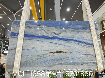 Azul Macaubas Quartzite je světle modrý kámen s aktivními vzory, který lidem připomíná krásu přírody v kamenném složení. Kámen je asi 7 na stupnici mohs tvrdosti, a tedy silnější než Blue Sodalite. Může být použit uvnitř i venku, jako je modrý mramorový kuchyňský deska nebo modrý mramorový krb. Její cloudové žíly, které proudí, přirozeně vytvářejí uklidňující a emotivní efekt, a proto jsou skvělé pro modré mramorové kávovarny nebo jídelní stoly s modrým kamenem.