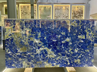 Čistá světlá modrá Azul Macaubas Quartzite je oblíbená pro skandinávský naturalismus v Evropě. Vypadá to skvěle s lehkým dubem a terrazzo. Střední východ má rád bohatost Blue Sodalite se zlatými mozaiky ve velkých vchodech vil, což je podobné tomu, jak jsou drahokamy vykládány v budovách.