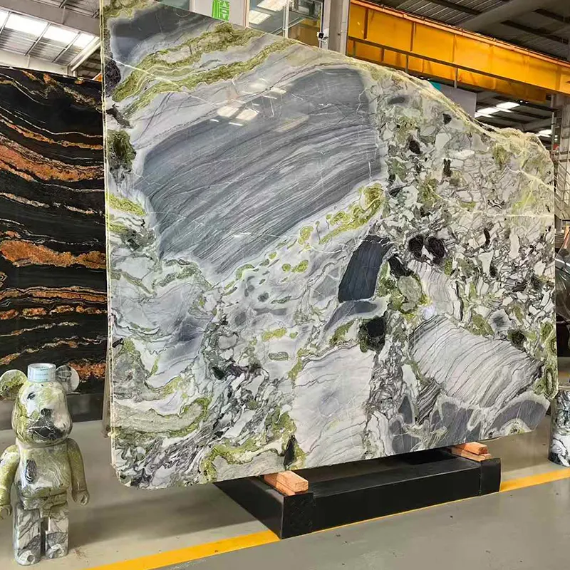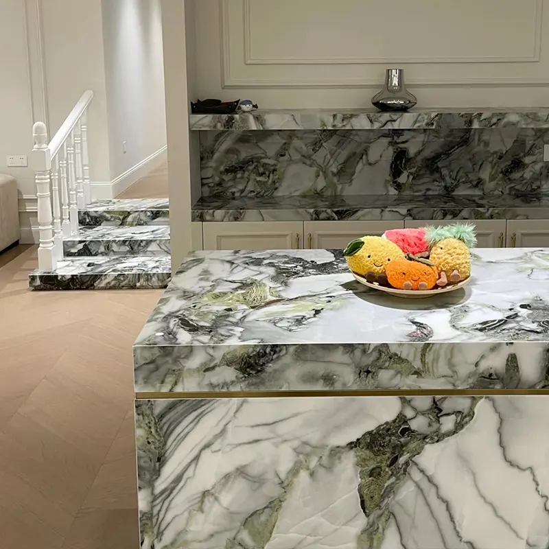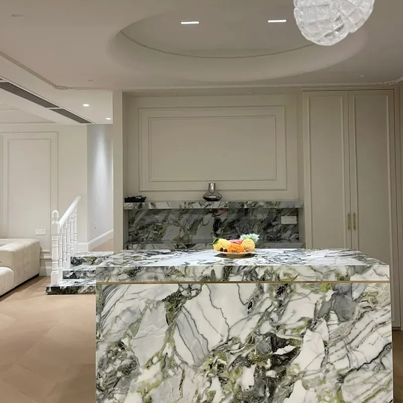 Vlastní projekty: Kámen může být vytvořen do umyvadel, marnostních vrcholů, ostrovních vrcholů a zelené mramorové mozaikové podlahy. Její všestranné volby velikosti a dokončení mu pomáhají přizpůsobit se klasickým i moderním vzorům.
