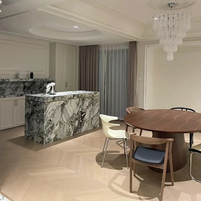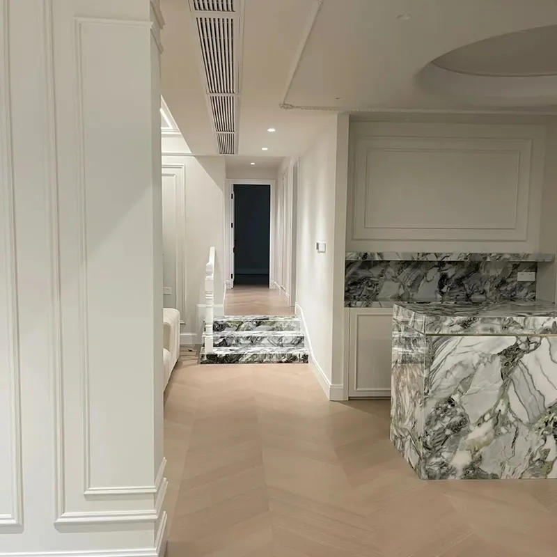 Severní Amerika: U luxusních mramorových desek a ostrovních vrcholů si zákazníci často vybírají leštěné povrchové úpravy. Projekty v domácnostech a hotelech často vyžadují 12x24 zelené mramorové dlaždice.