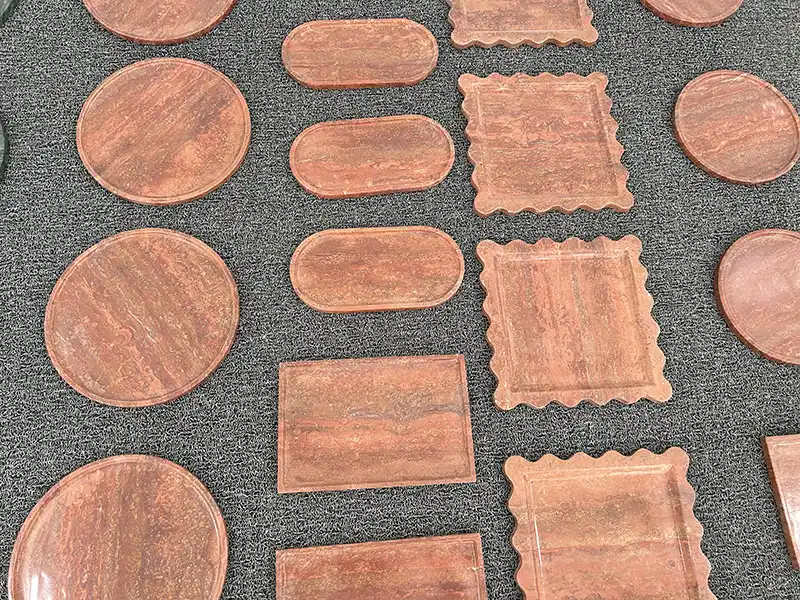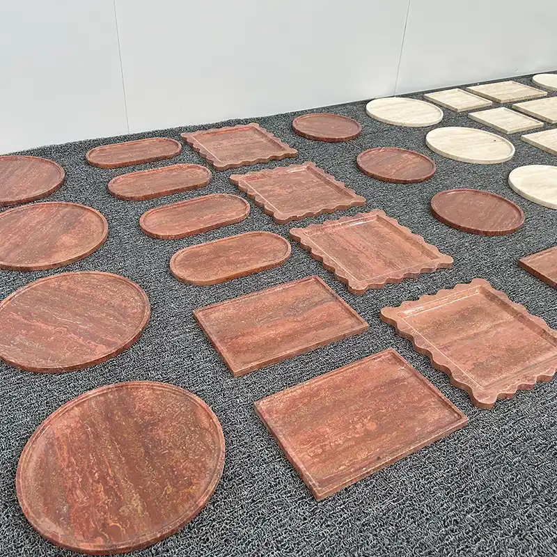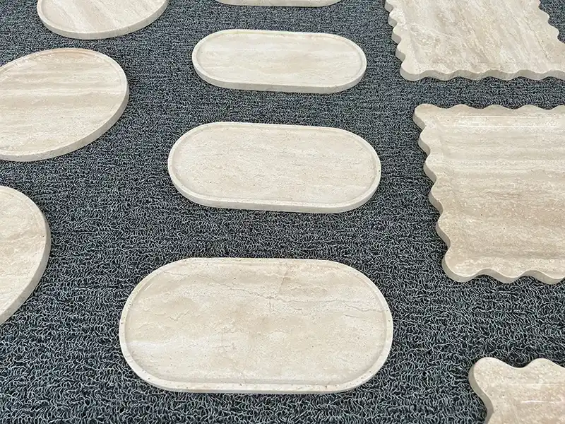 Můžeme upravit konstrukci tvaru, výšky a hrany tak, aby vyhovoval vašemu osobnímu vzhledu. Můžeme transformovat fotografii nebo myšlenku, kterou nám dáte do skutečného produktu. Než zadáte objednávku, pošleme vám kresby CAD pro váš souhlas. Můžeme dokonce vyrobit vykreslování, abyste mohli vidět, jak bude travertinový podnos vypadat ve vašem prostoru.