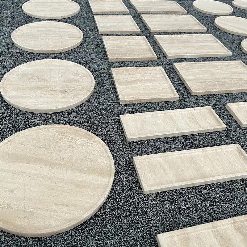 Kruhá trayová tray, oválný travertinový podnos, velký kulatý trays, vroubkované travertinové podnos, malý travertinový podnos atd., Jsou to jen některé z mnoha tvarů a velikosti travertinových podnojových zásobníků. Vlastní velikosti a profily okrajů jsou také nabízeny dodavateli jako Wow Stone.